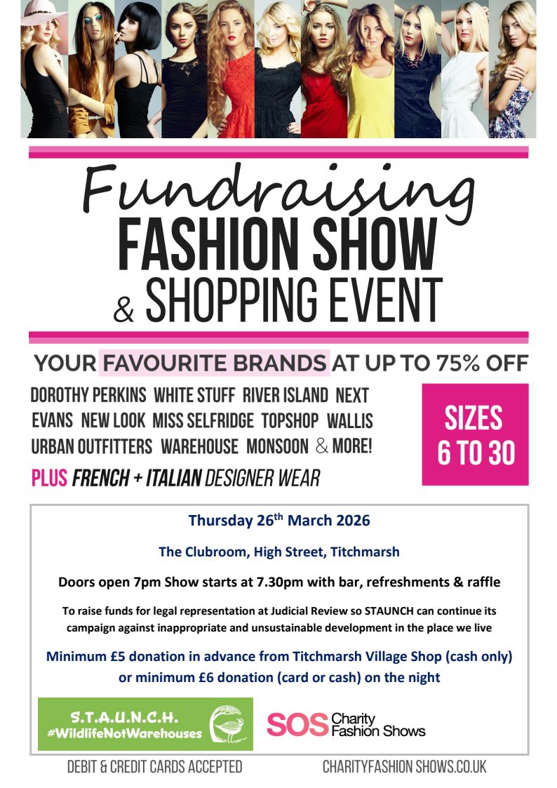 Our fundraising team continue activity to help ensure we have sufficient money to take on the council and developers. We hope you will feel able to continue your unwavering support. The STAUNCH team are all community volunteers and do not claim any personal expenses, covering these from their own pockets. This ensures that all the donations we receive can go directly to funding our legal team. Should anyone wish to donate please visit our GoFundMe page https://www.gofundme.com/f/wildlife-not-warehouses-2994q Please do share this link on your own social media channels. You can also donate via our website at: Fundraising – STAUNCH Campaign – Save the Upper Nene Valley If you prefer to pay directly to the STAUNCH bank account, please do not hesitate to email me for the relevant bank details.